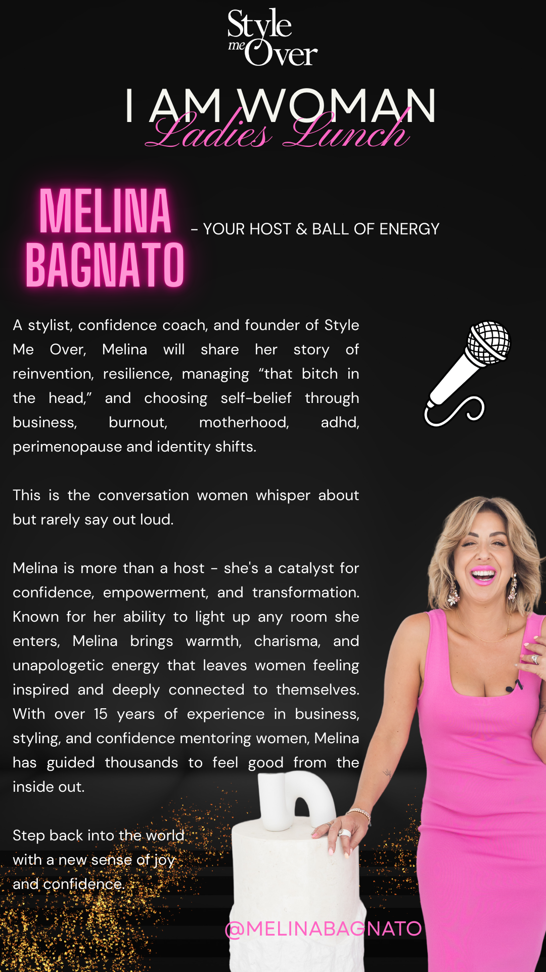 Hosted by Melina Bagnato - stylist, confidence coach, and founder of Style Me Over - this immersive Women’s Day experience is designed to reignite self-belief, confidence, connection and joy!